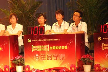 主题知识竞赛是我校深入学习实践科学发展观活动中的一项特色活动,自通知下发后,学院领导高度重视,院团委精心组织,经过严格选拔,擢选出了由付强、郭慧珍、朱晓旭、曹慧芬、程娜娜、赵杰、胡瑞瑞、袁灵秀等八位同学组成的代表队参加比赛。经过充分准备,B体育BSport代表队在初赛和复赛中都取得了优异的成绩,成功晋级决赛。作为唯一一支进入决赛的理科学院代表队,B体育BSport选手在决赛的各个环节中答题准确,应变灵活,态度积极,表现极为突出,赢得了在座领导和现场观众的高度认可,并最终以绝对优势获得总分第一名!